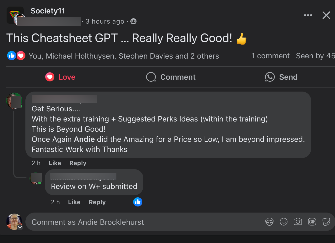 "Imagine not spending a single minute thinking about cheat sheet design and writing ever again and letting this specially trained GPT do ALL the work for you. This is like having a full-time professional writer working for FREE within your business..."